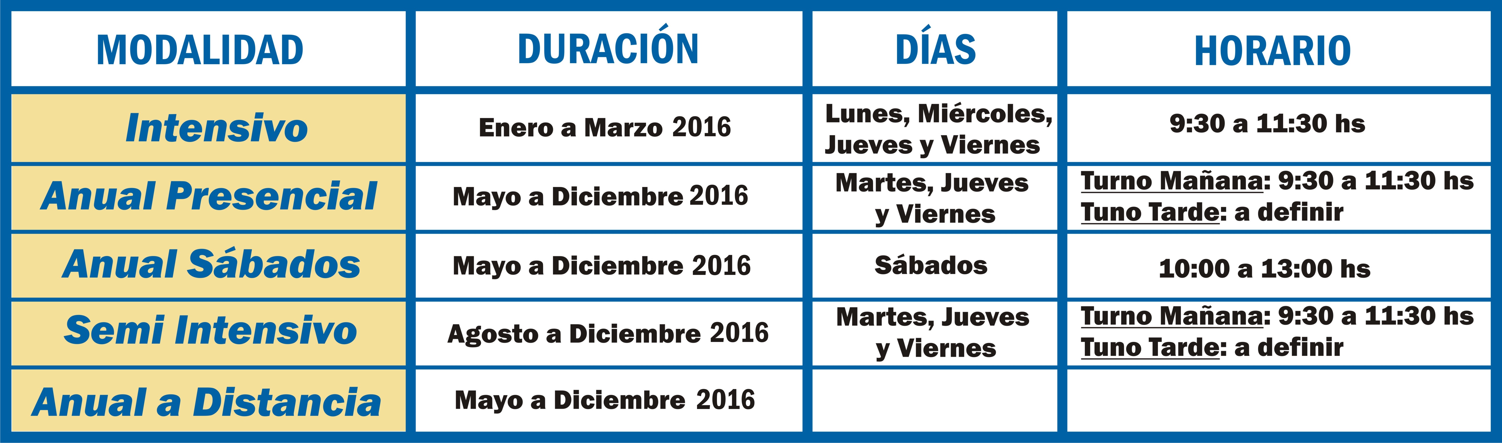 • La modalidad es 4 veces por semana, en clases de 2hs cada día.